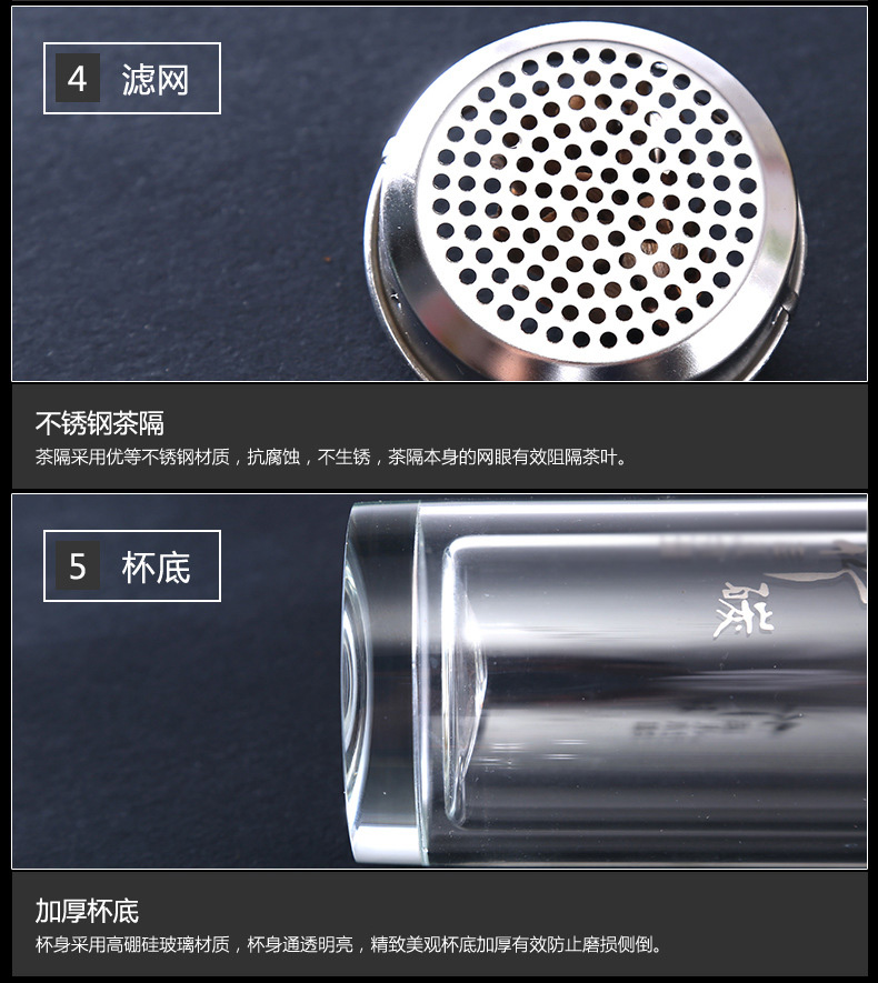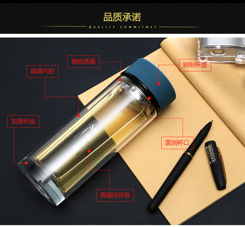 華潤怡寶定做促銷透明水晶杯 茶水分離雙層便攜玻璃杯