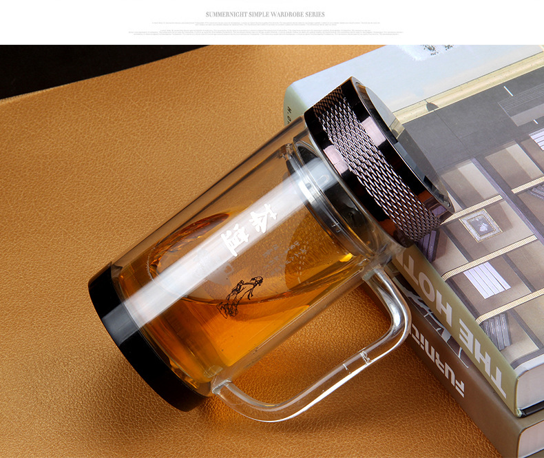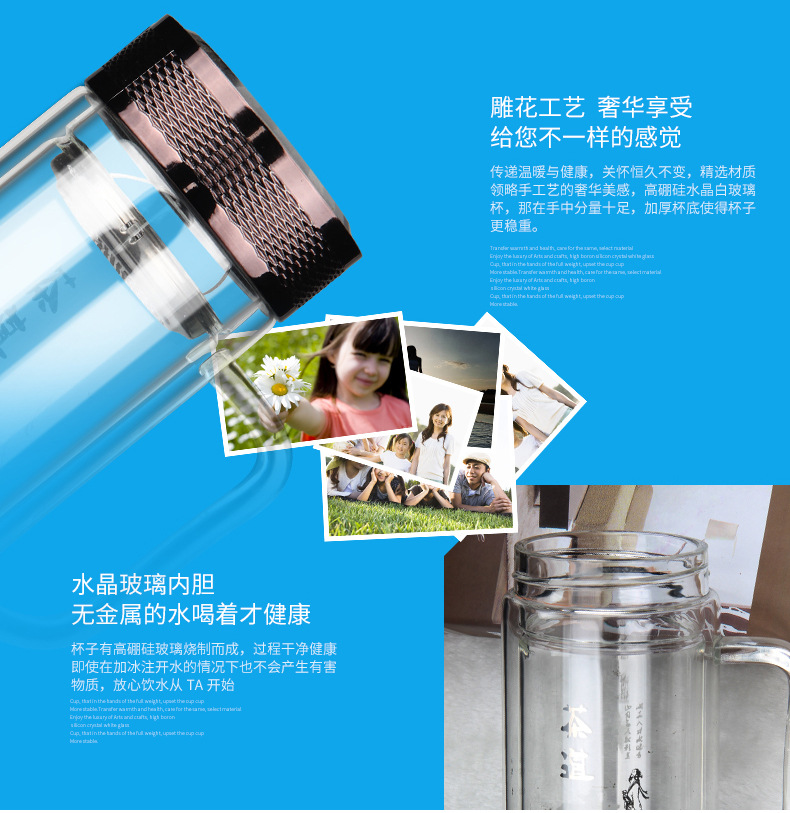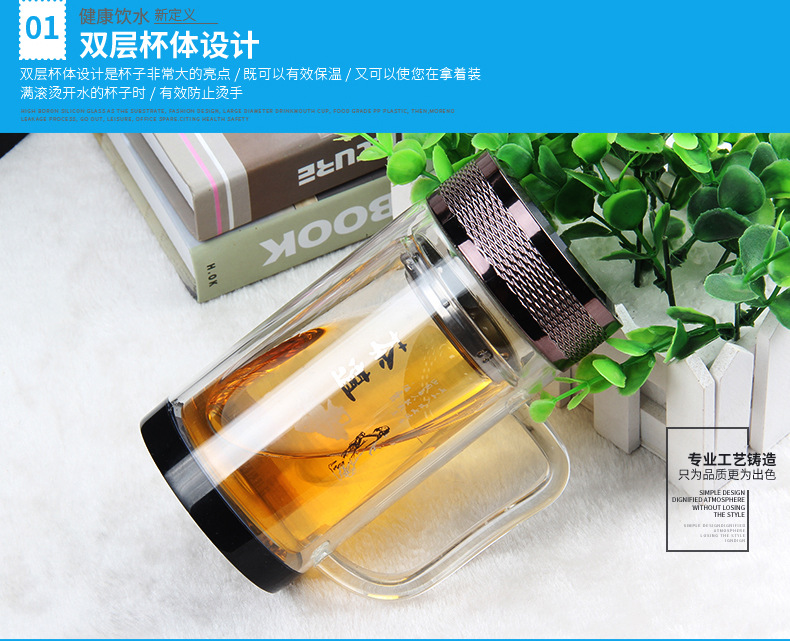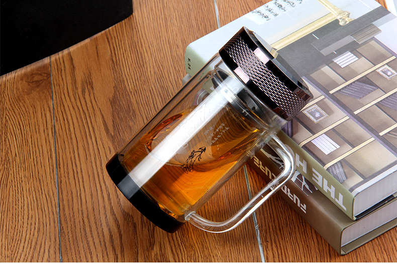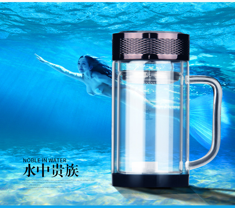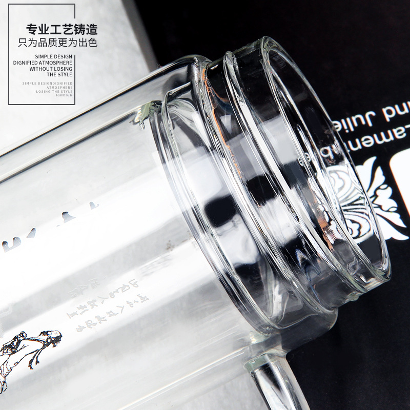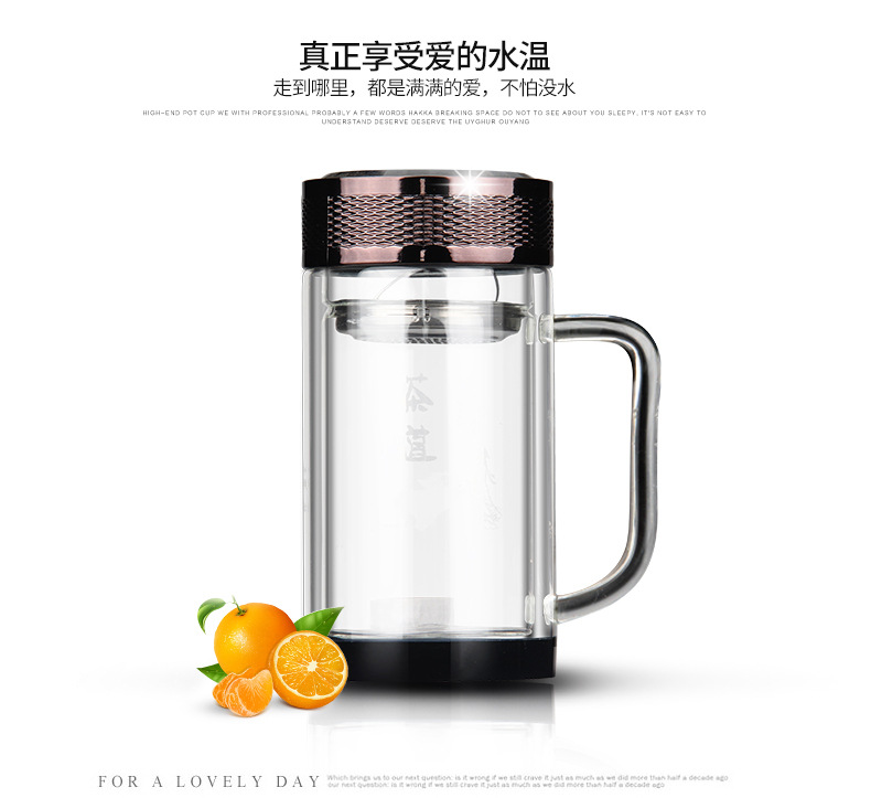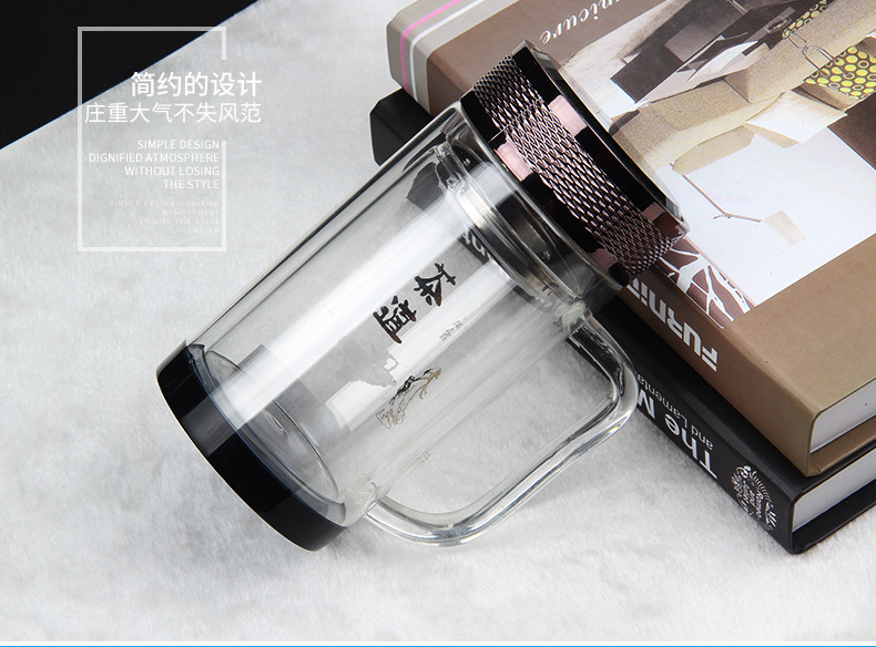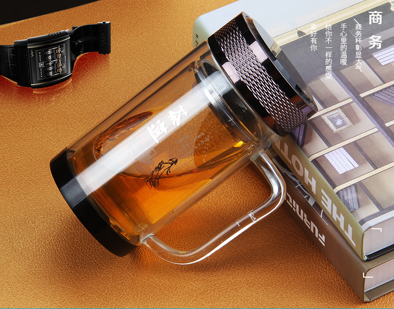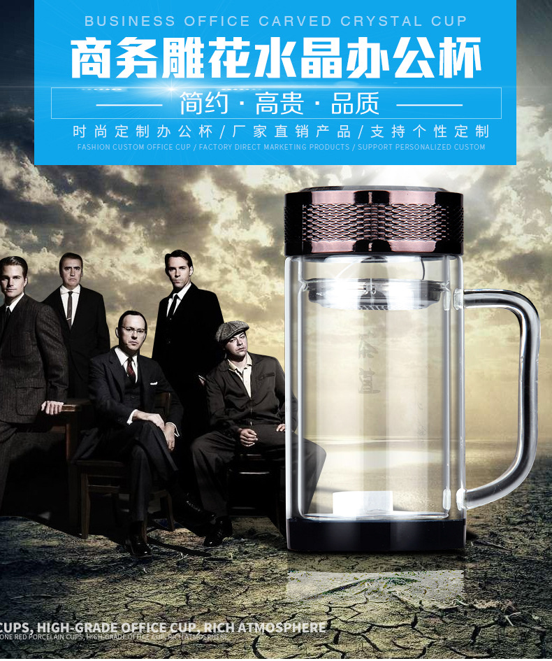 廣東蕾洛商用廚房設(shè)備定制高檔雙層水晶玻璃杯商務(wù)帶手柄水杯