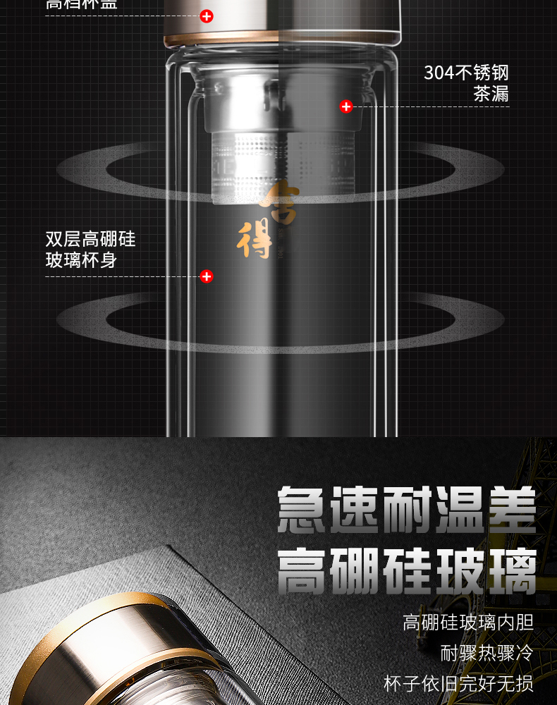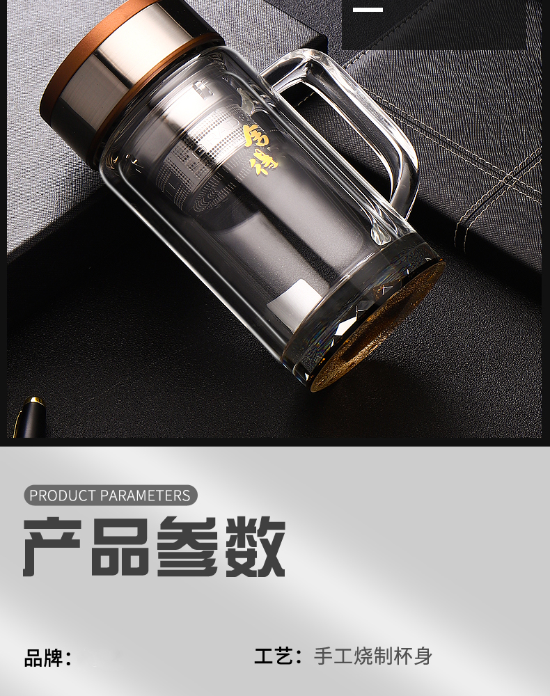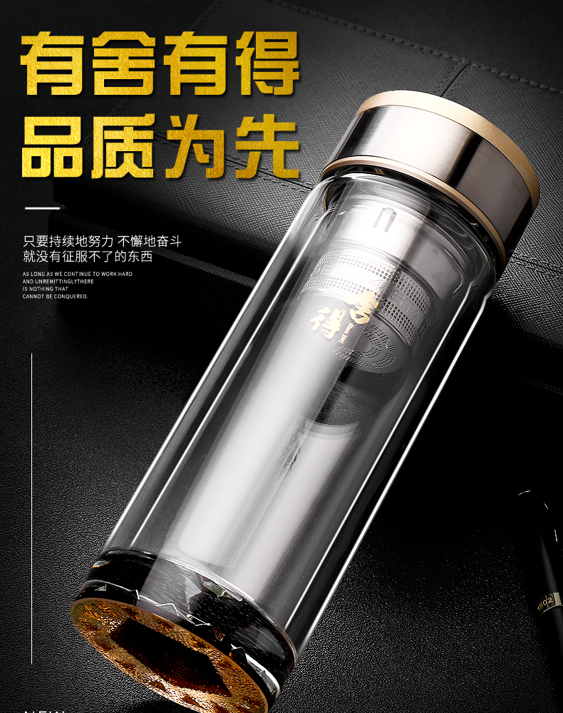 雙層加厚高檔玻璃杯男泡茶杯辦公車載耐高溫茶水杯子禮品定制