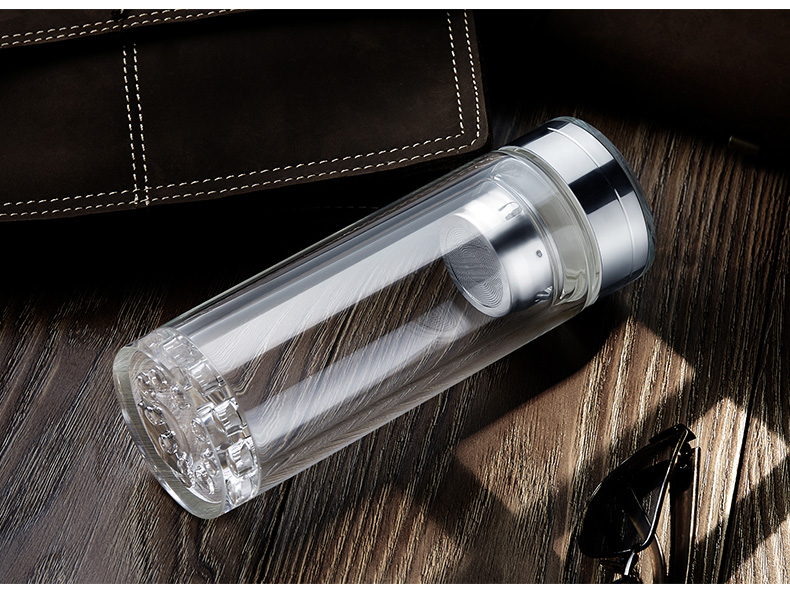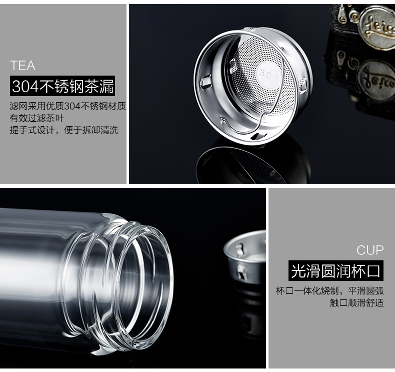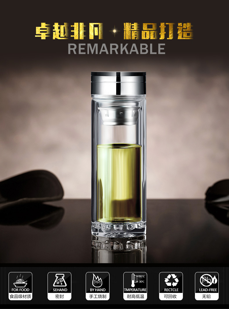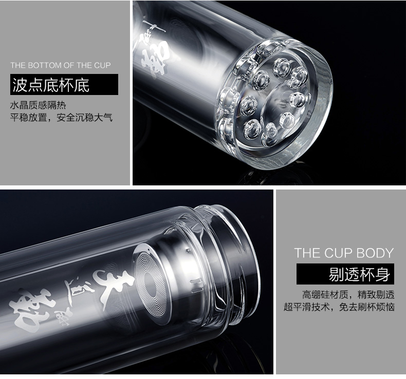 創(chuàng)意雙層波點(diǎn)底玻璃杯帶蓋茶杯批量訂定制印LOGO
