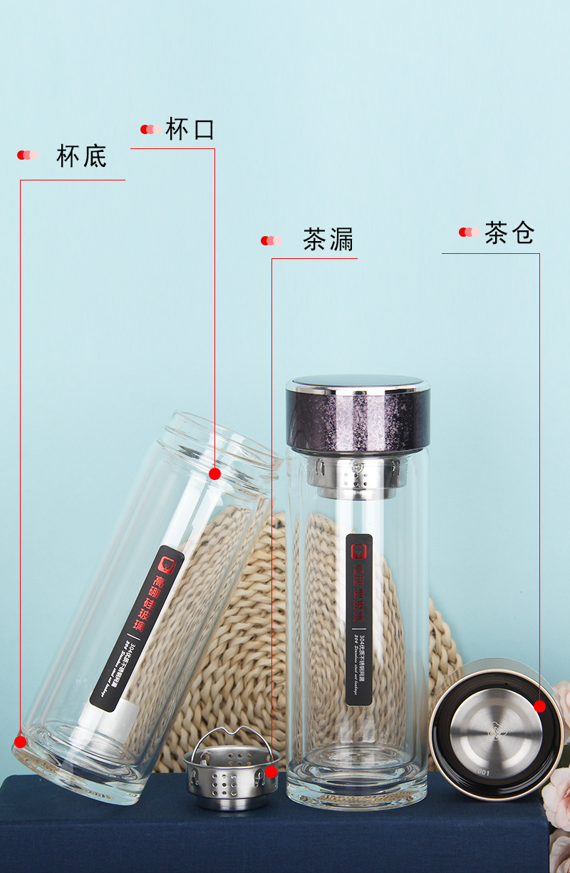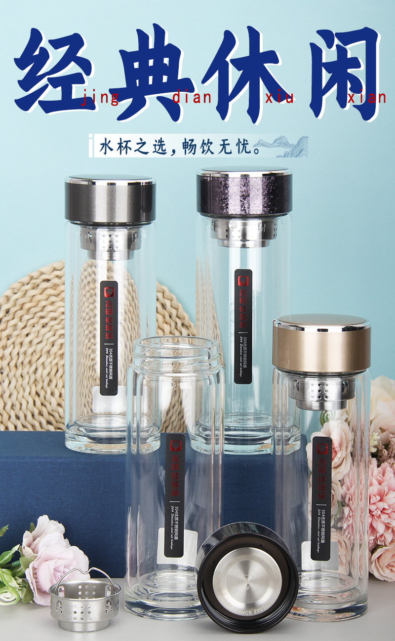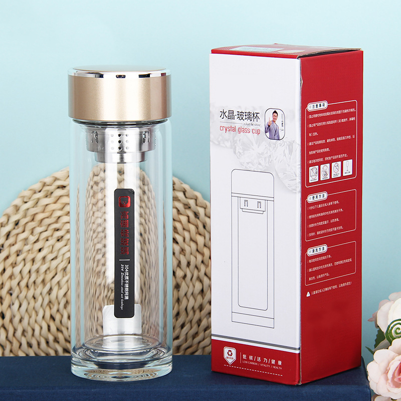 424雙層加厚隔熱水晶玻璃杯高硼硅禮品杯廠家批發(fā)廣商務(wù)水杯