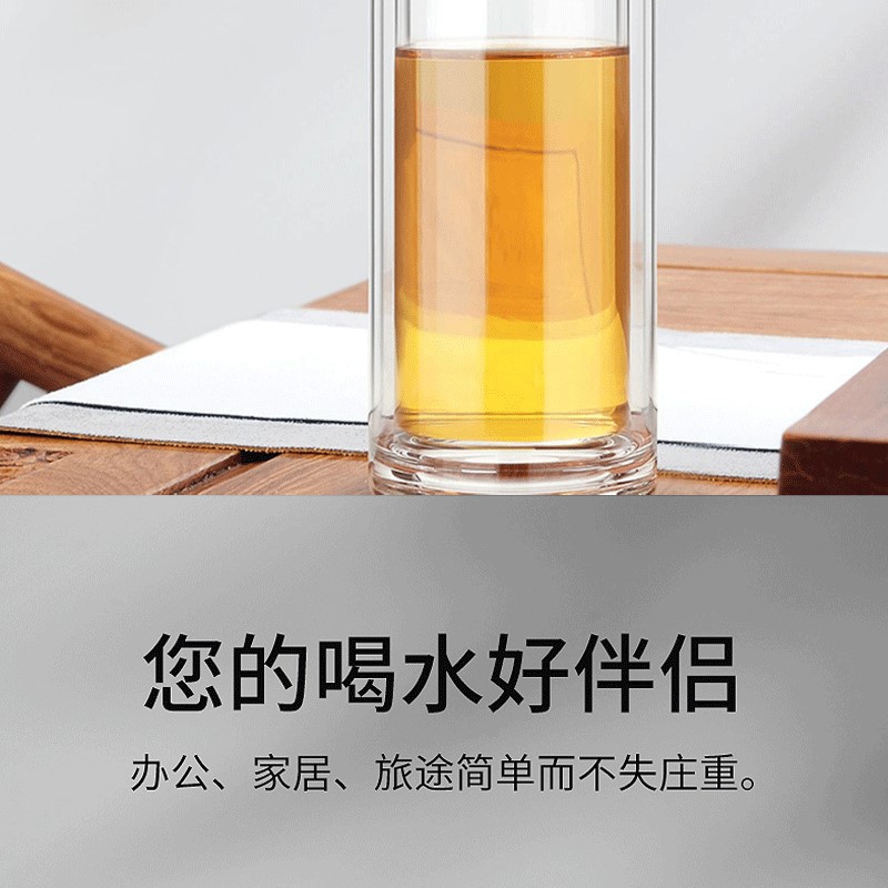 網(wǎng)紅茶水分離杯雙層玻璃杯家用透明玻璃水杯商務(wù)禮品茶杯隔熱