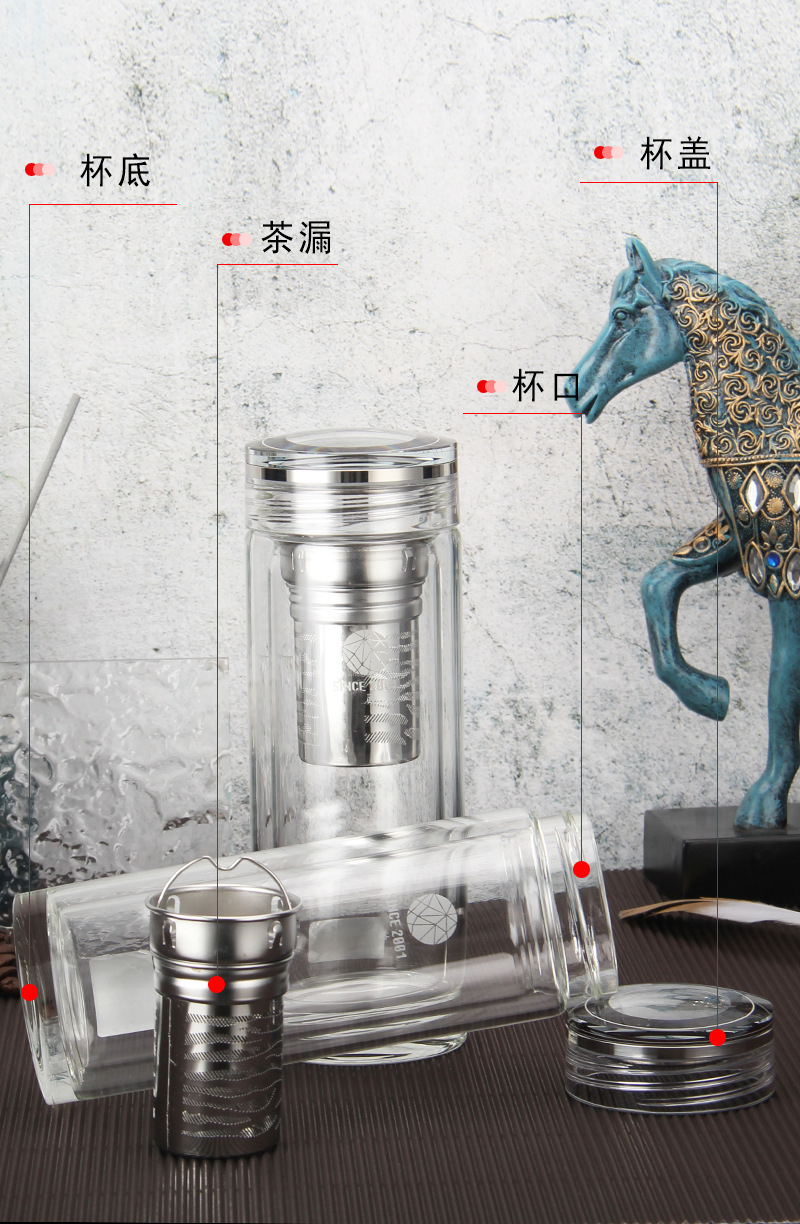 鈦蓋雙層玻璃水晶杯