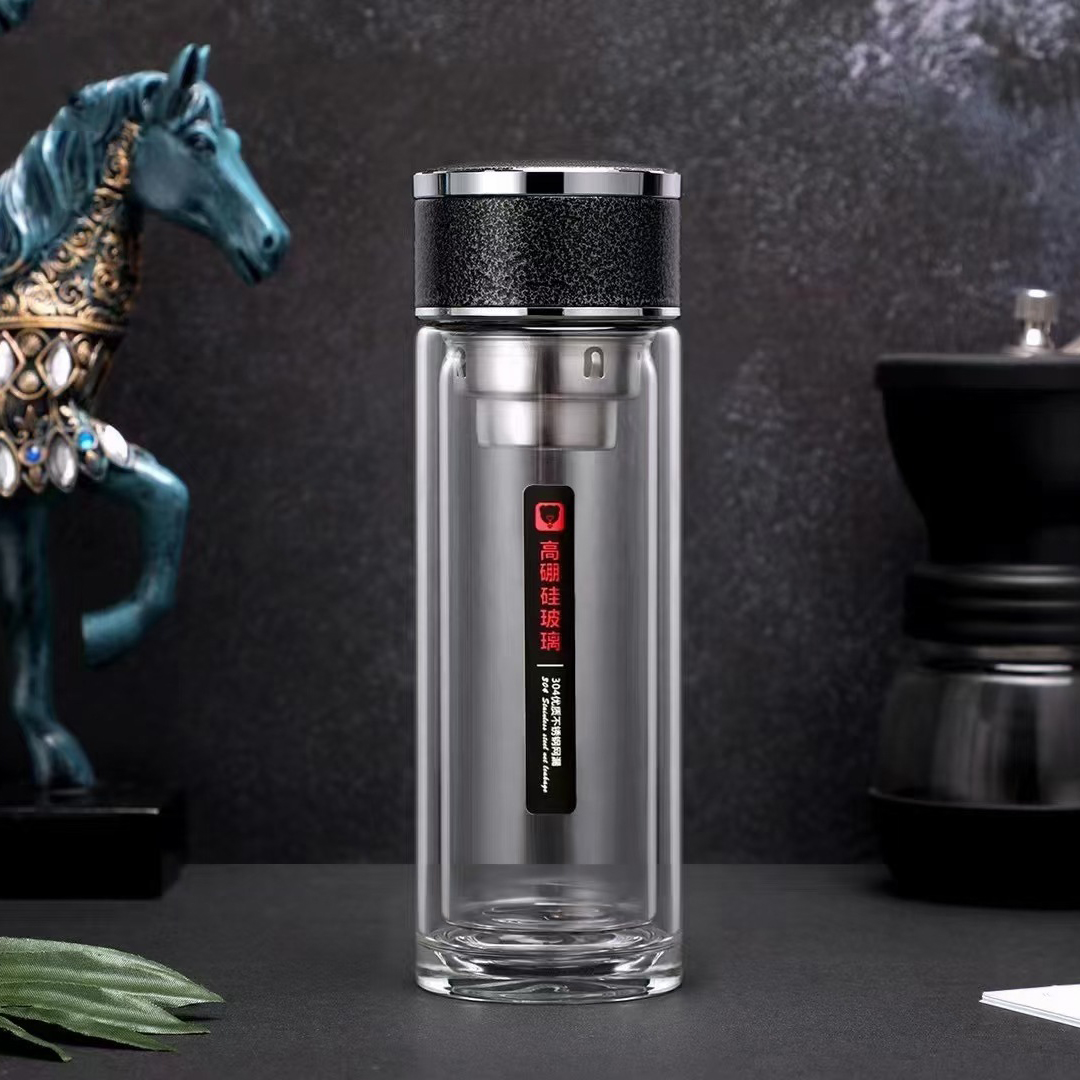 雙層玻璃杯茶杯批發(fā)辦公杯會(huì)議室泡茶杯廣告禮品玻璃水杯