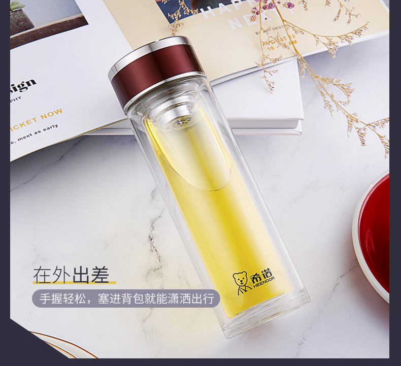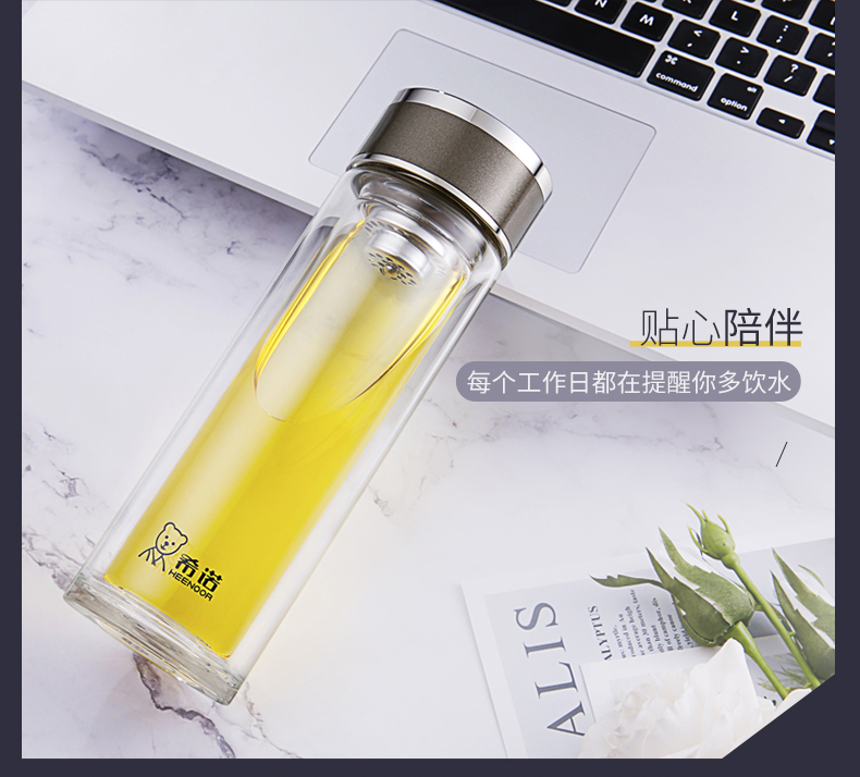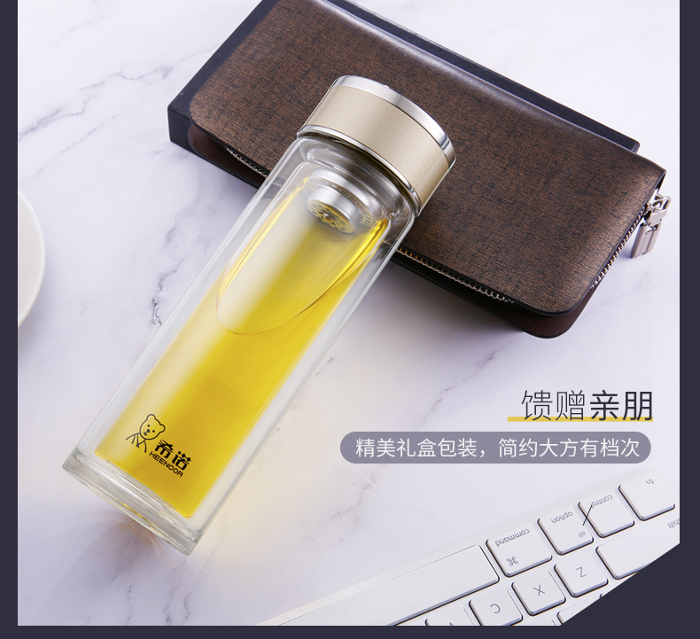 希諾玻璃杯旗艦店官網(wǎng)男女士雙層隔熱防燙商務(wù)簡(jiǎn)約泡茶便攜水杯