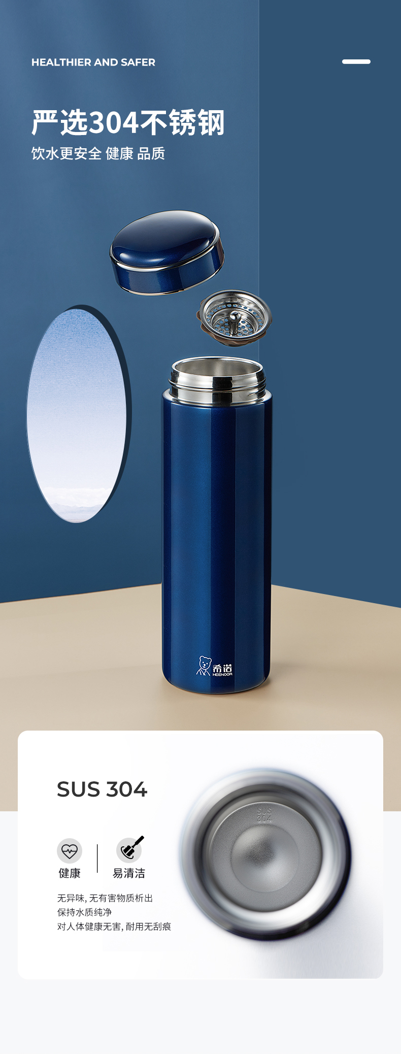 希諾保溫杯商務濾網(wǎng)泡茶杯子男女士便攜定制商務304不銹鋼水杯