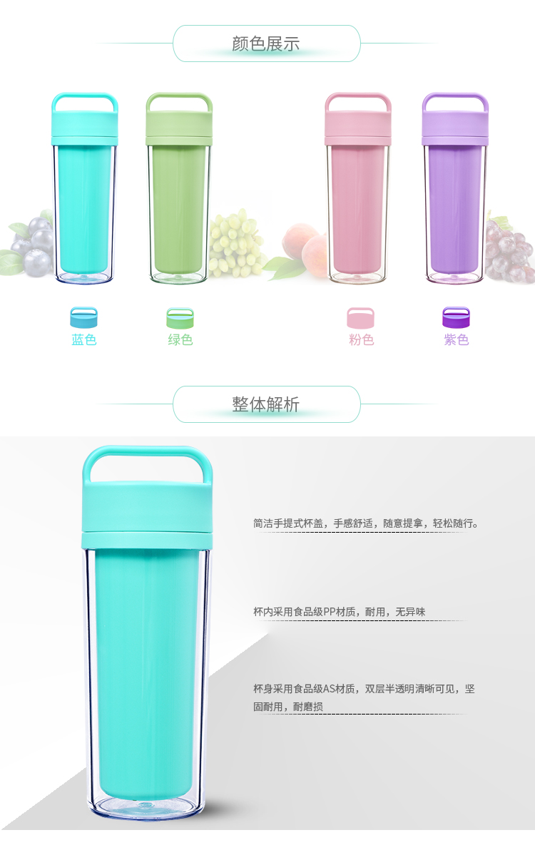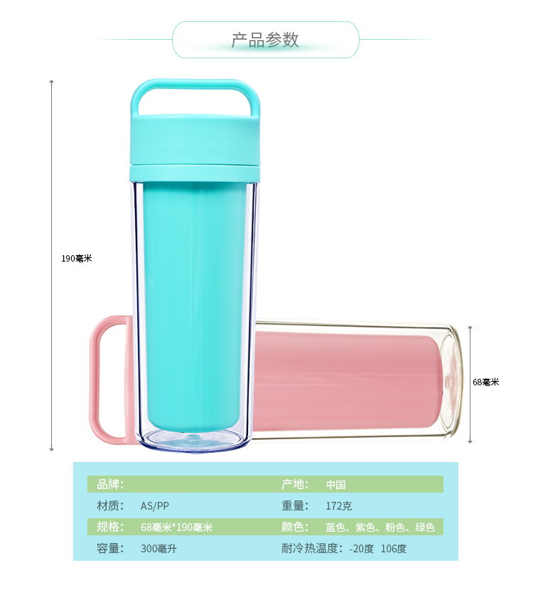 運動水杯 便攜防漏隨手杯 學生杯子 情侶創意水杯子 雙層塑料杯子 300ml